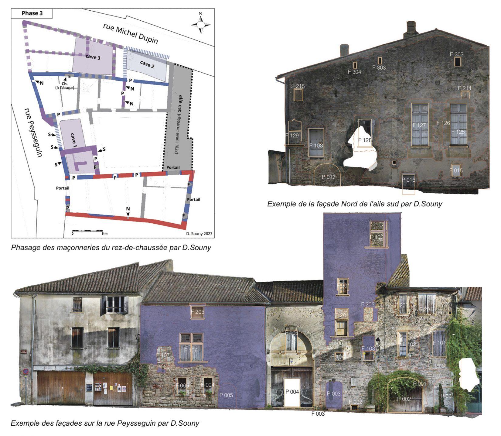 Les bâtiments constituant l’hôtel Peysseguin ne forment pas un ensemble homogène. Ils résultent d’une recomposition progressive du parcellaire et d’agrandissements successifs. Ainsi, quatre phases principales de construction ont pu être identifiées.